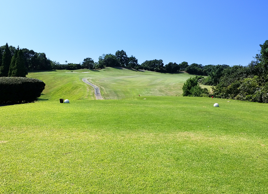 谷越え右ドッグレッグのミドルホール。飛距離に自信がある方はワンオンも可能。ツーオン狙いの場合左サイドがベター。