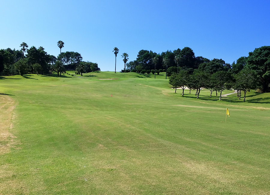スタートホールから難易度大のミドルホール。セカンドは打ち上げのため1番手上のクラブを選択したい。ガードバンカーに注意!