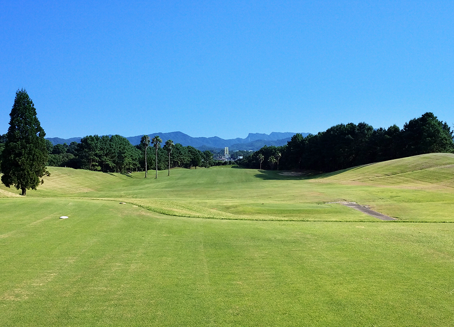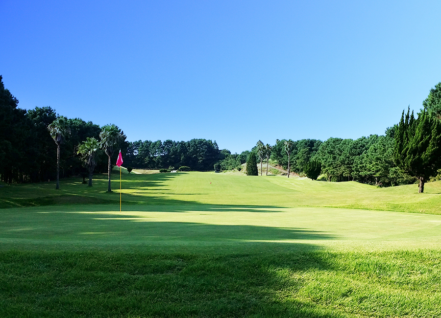 ストレートでフラットなミドルホール。グリーン周りのグラスバンカーに要注意!