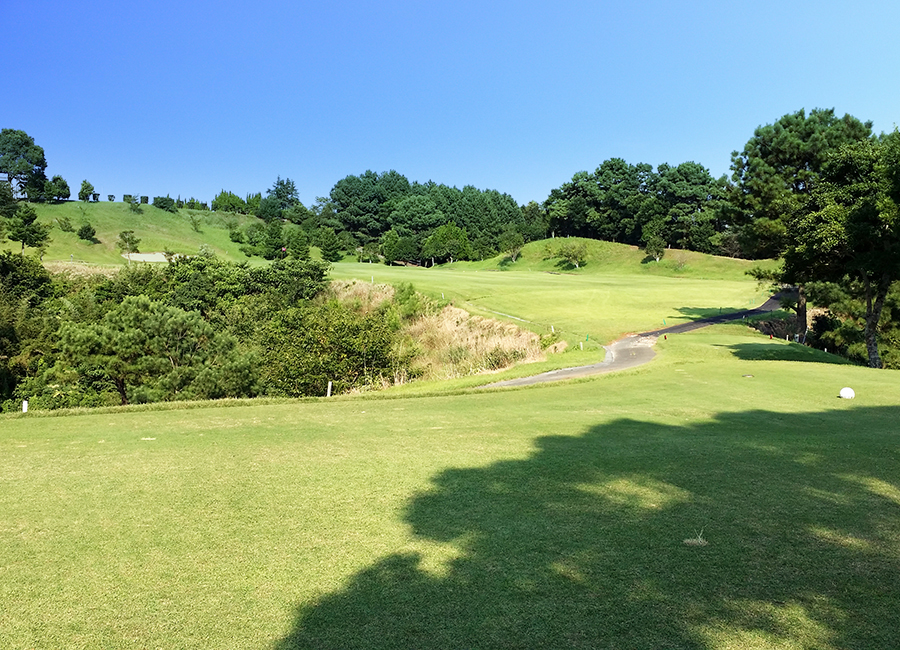 谷越えの最終ショートホール。グリーンが縦長のためピンポジションに要注意!手前から攻めるのが安全策。