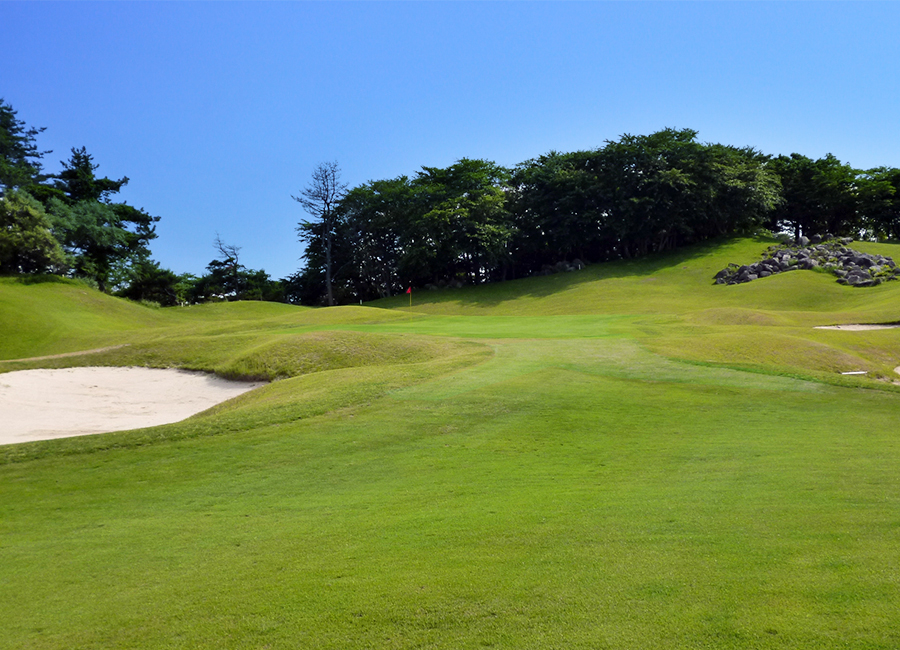 右は土手になっているので、低い弾道で攻めるのが安全。