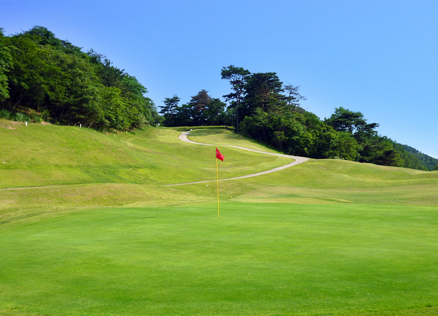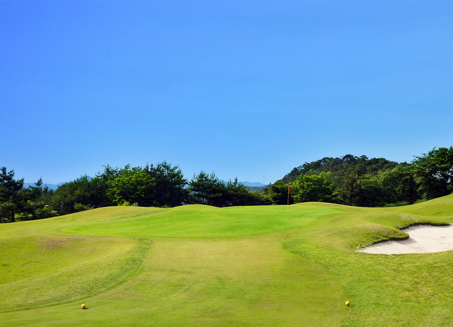 風向きに注意し、3段グリーンの為、落とし所に注意。