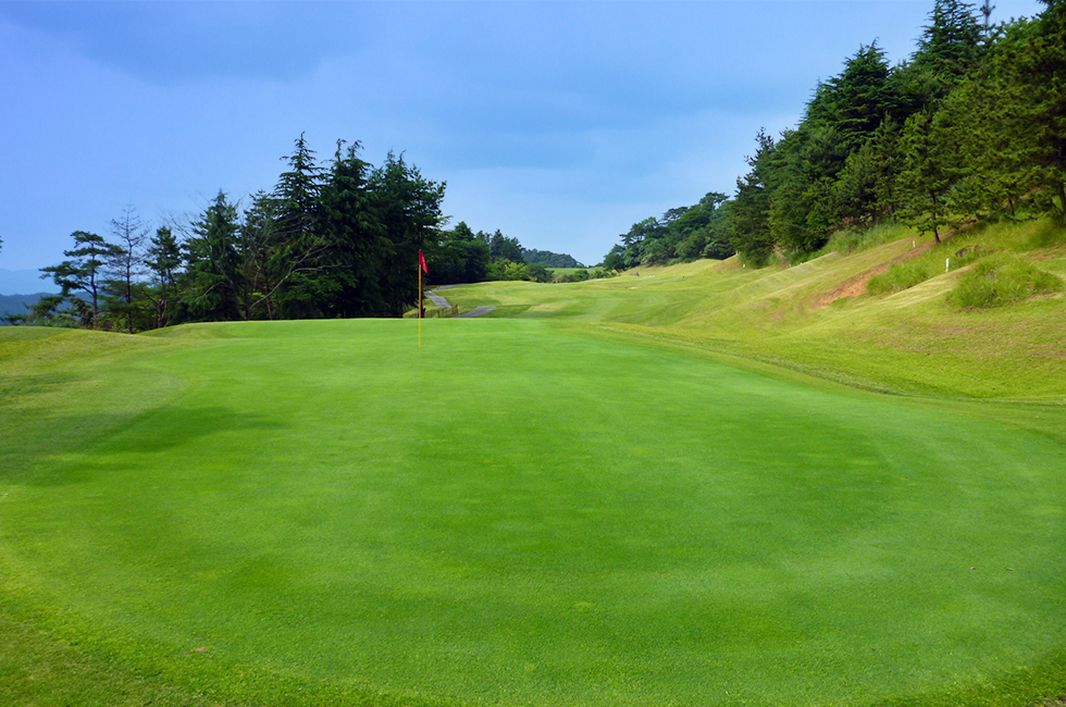 右サイドは狭いので、正面のバンカー方向を狙うのが安全。