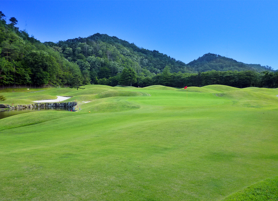 2段グリーンになっているので、ピン位置にあったクラブ選択が必要。