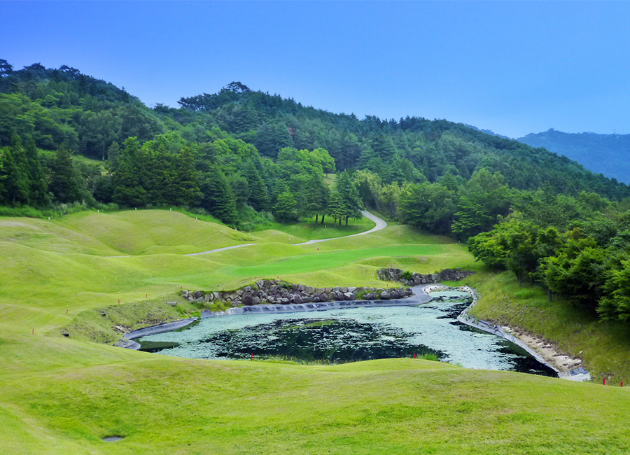 池やグラスバンカーを避ける為にも1クラブ大きめのクラブで。