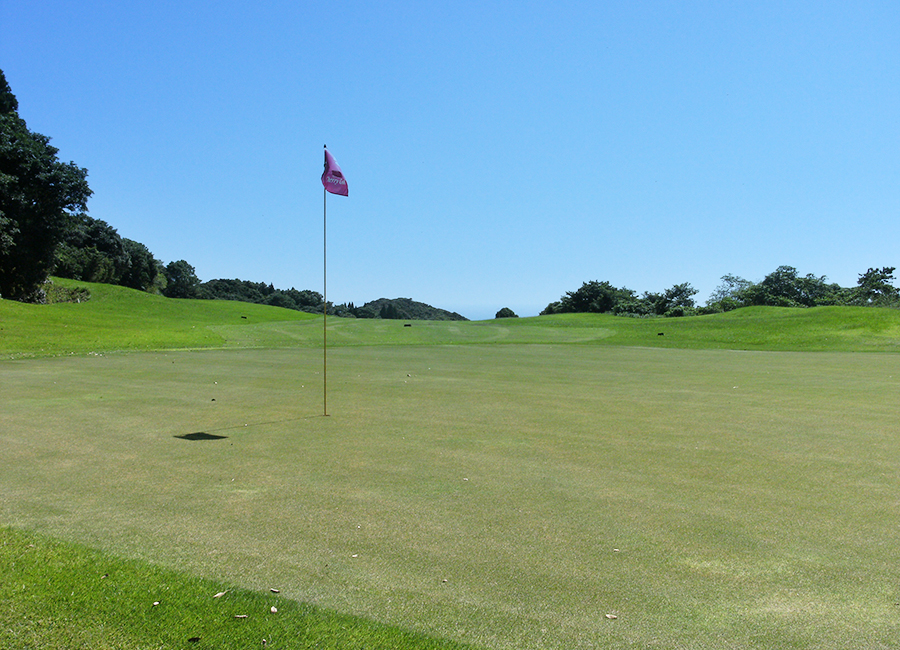 やや打ち上げのロングホール。