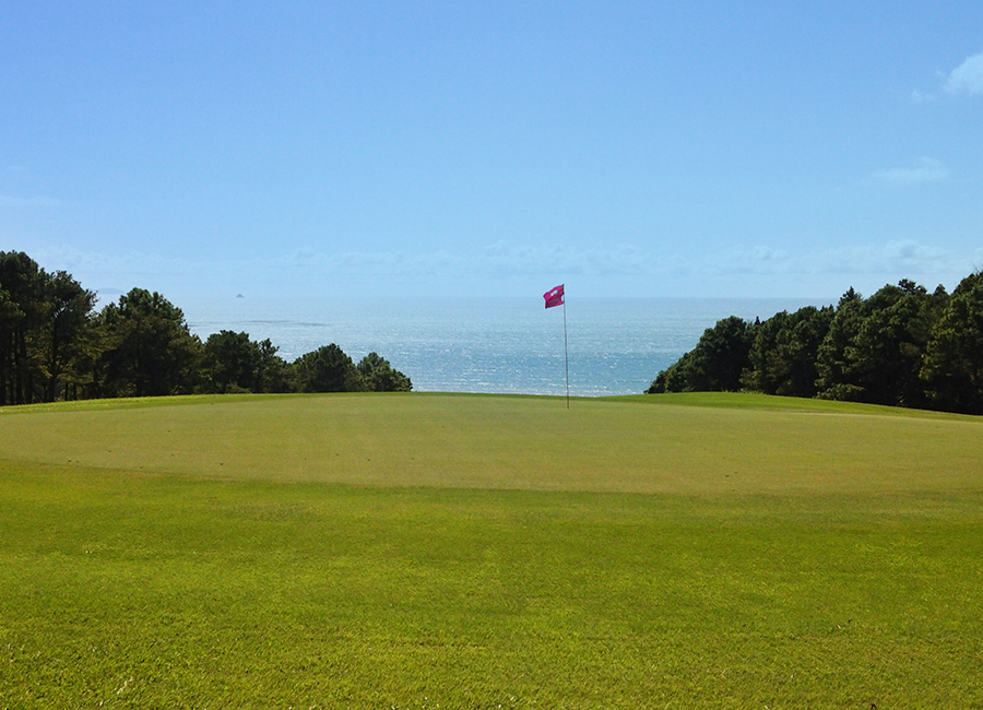 東シナ海をバックに打ち上げのタフなロングホール。