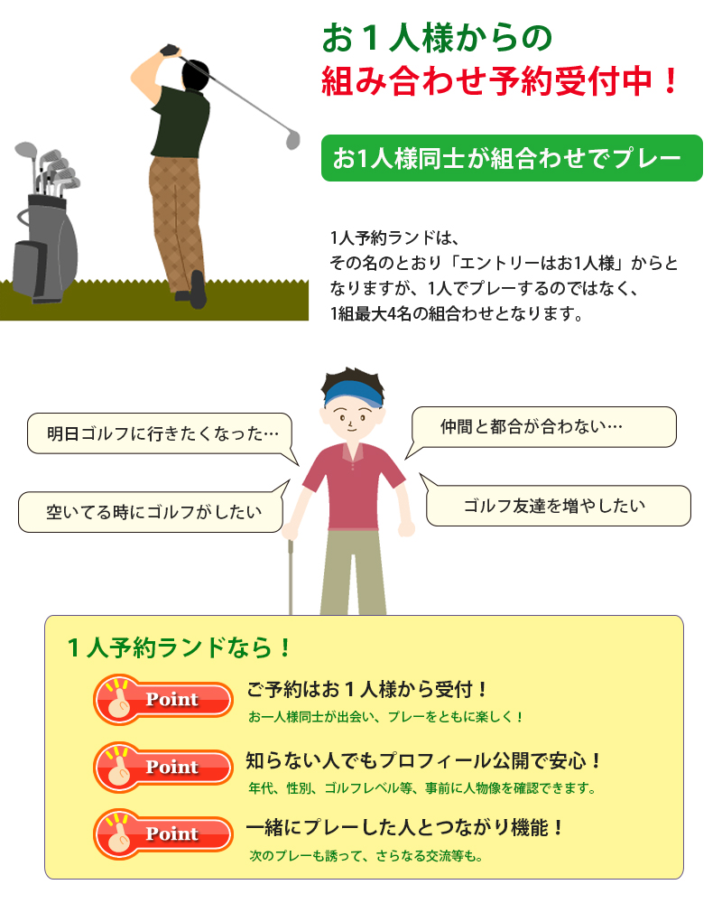 1人予約ランドは「ゴルフの1人予約」サービス。