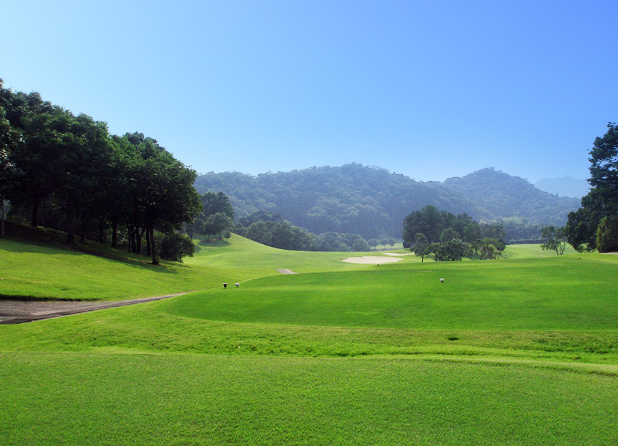 下り上り下りと起伏が続くロングホール。