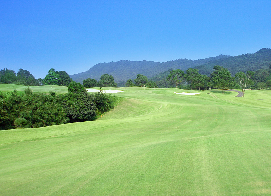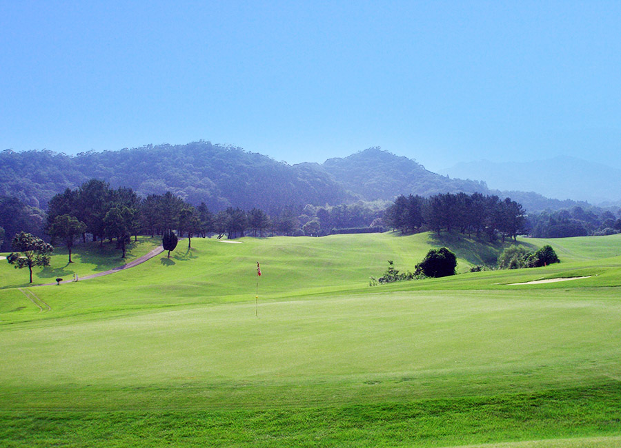 大瀬グリーンへの2打目は腕試しのショットとなる。