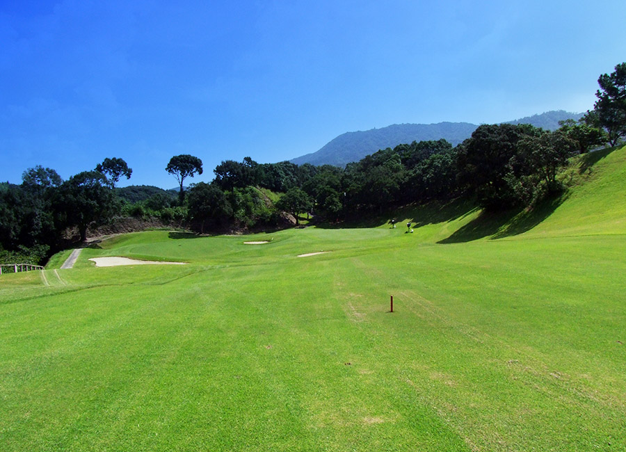 コースなりに左は全てOBゾーンとなる。右サイドで安全に攻めたい。