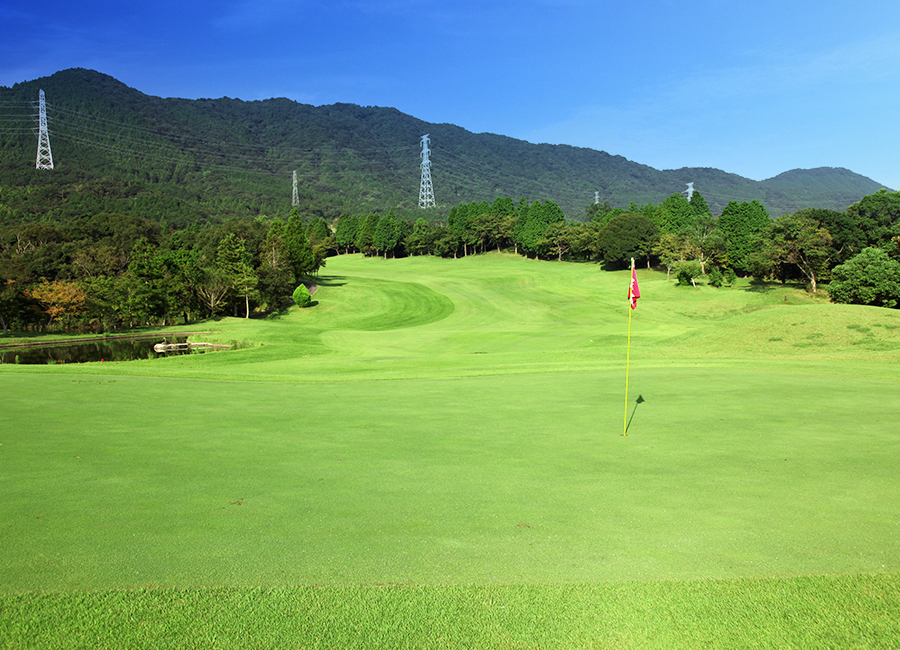 距離のある右ドッグレッグホール。 右サイドはOBや池があるため、左サイドから攻める方がベスト。