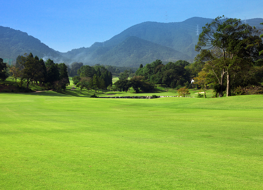 池越えの右ドッグレッグロングホール。池(OB)があるので2オンは至難の業。ティーショットは無理せず方向性重視でいきましょう。