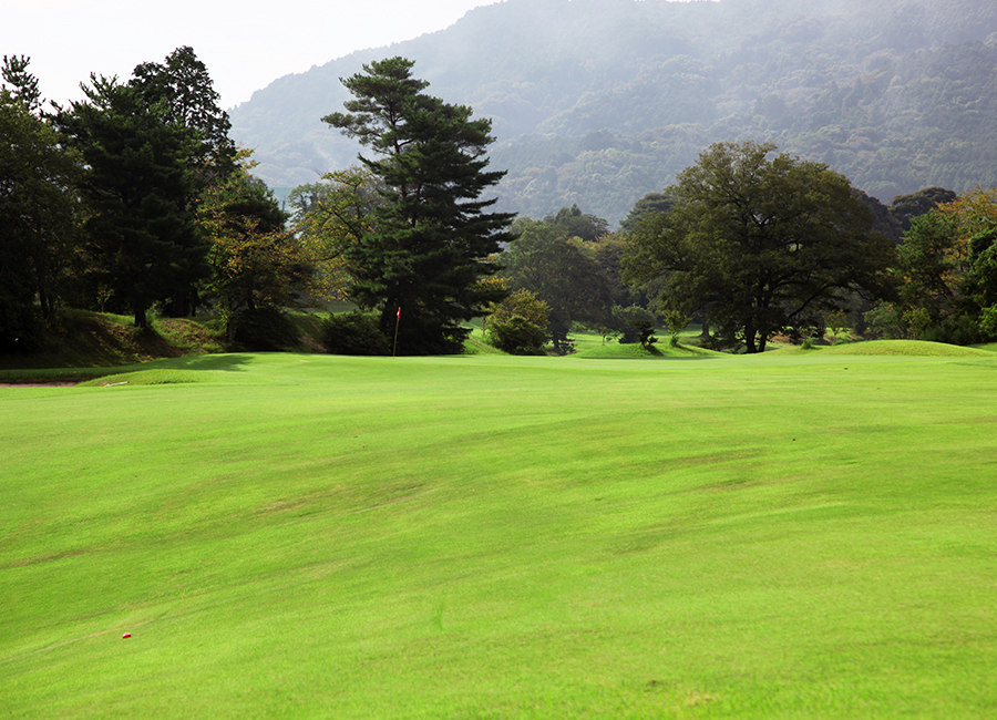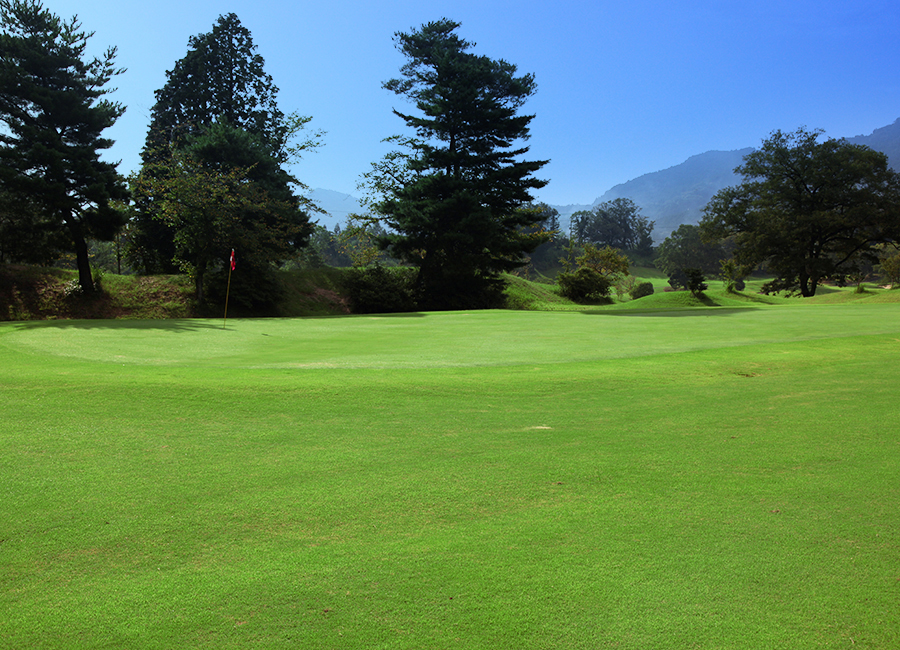 ティーグランドからピンが見える数少ないホール。しかし、ティーショットの位置で難易度が大きく変化。フェアウェイ右側から攻めていけたら大したもんだ。