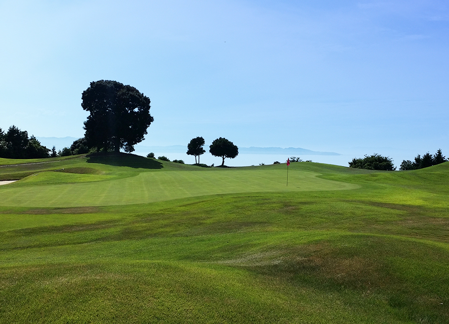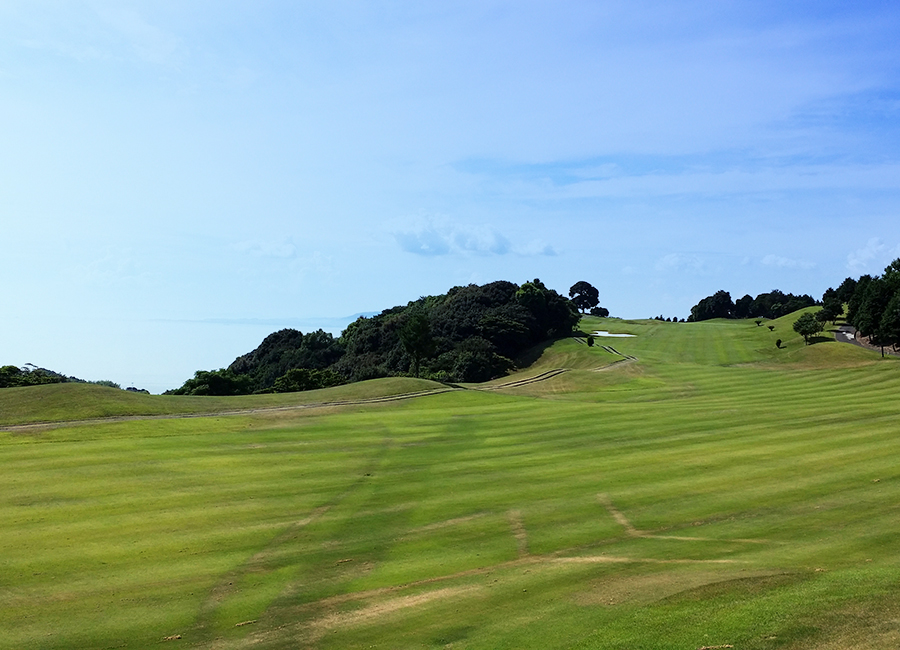 左ドッグレッグで美しいレイアウトのスタートロングホール。左サイドのOBラインに要注意!