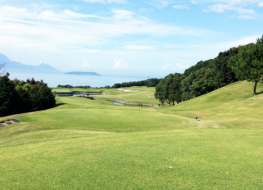 打ち下ろしのミドルホール。池もあり戦略性に富んだ名物ホール。ティーショットのクラブ選択を慎重に!