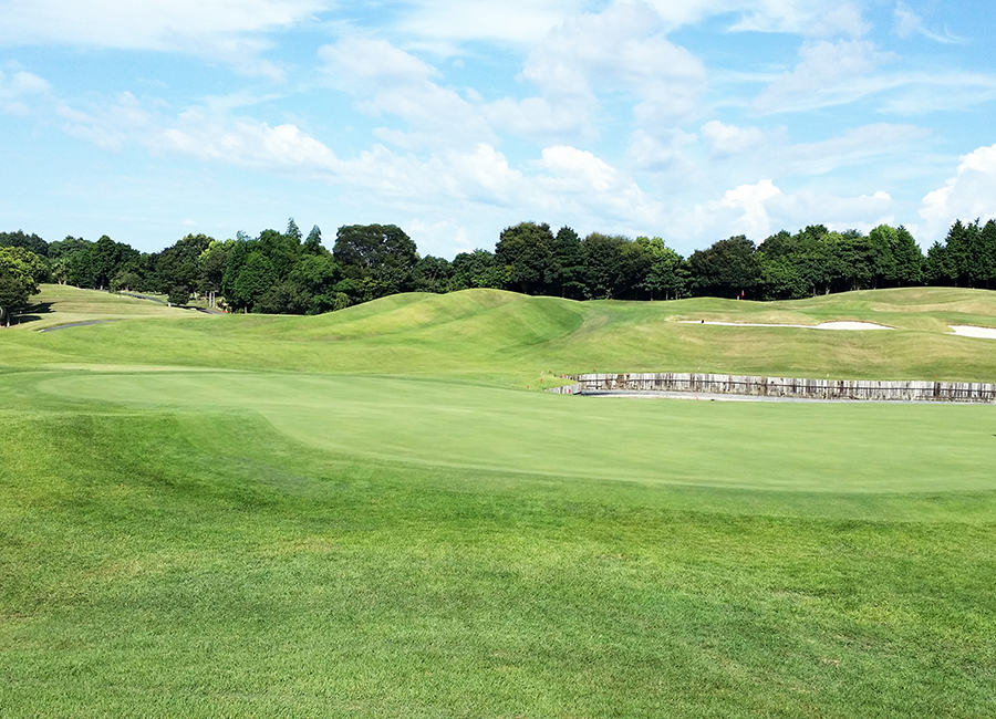 グリーン左サイドに池のあるショートホール。グリーンはアンジュレーションのある二段グリーン。