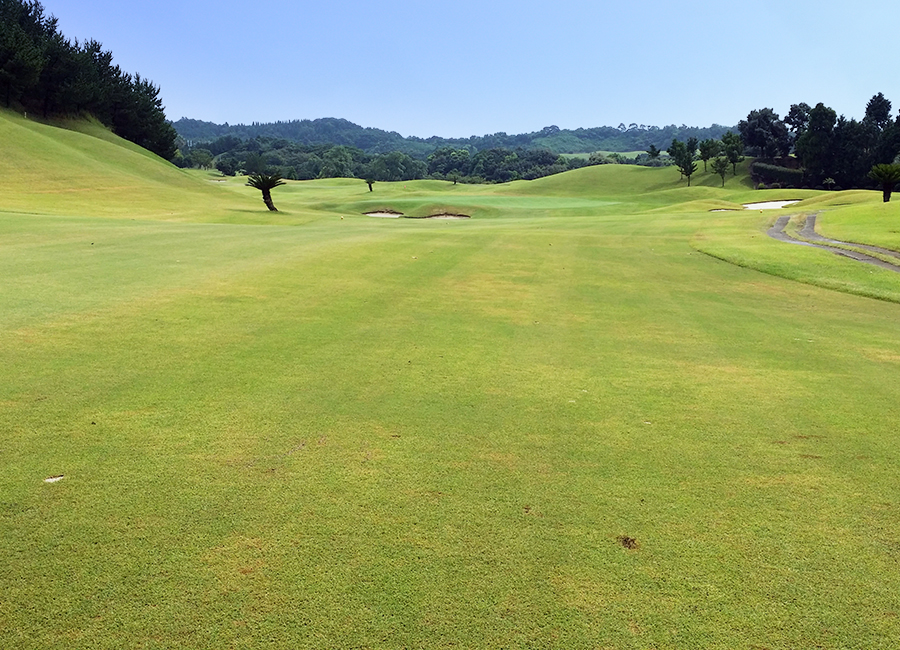 やや右ドッグレッグのミドルホール。ティーショットは左クロスバンカー横狙いで。
