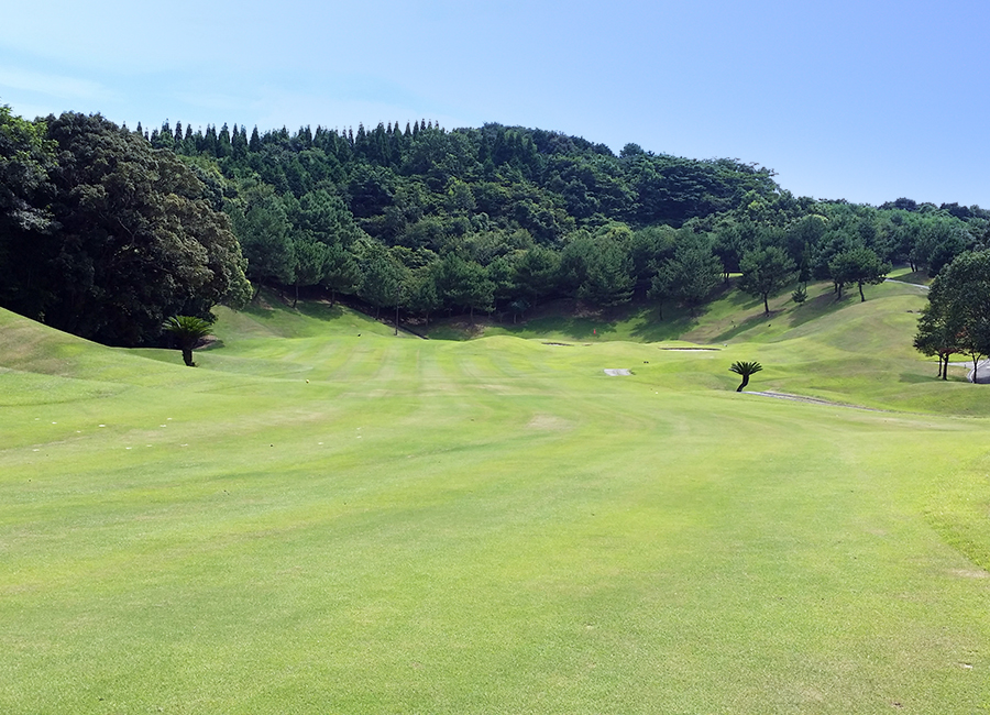 やや打ち下ろしのミドルホール。ティーショットは右OB注意!