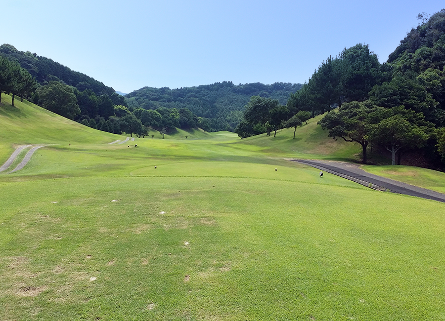 緩やかな打ち下ろしのロングホール。ティーショット次第ではイーグルも狙える。