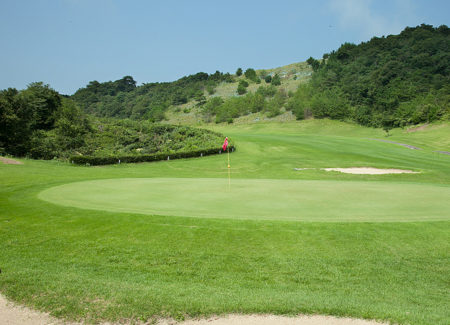 セカンド地点からグリーンへのショットは精度を要する。ホールから見える景色は絶景。