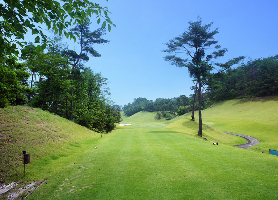 やや左ドックレッグで打ち上げのロングホール。