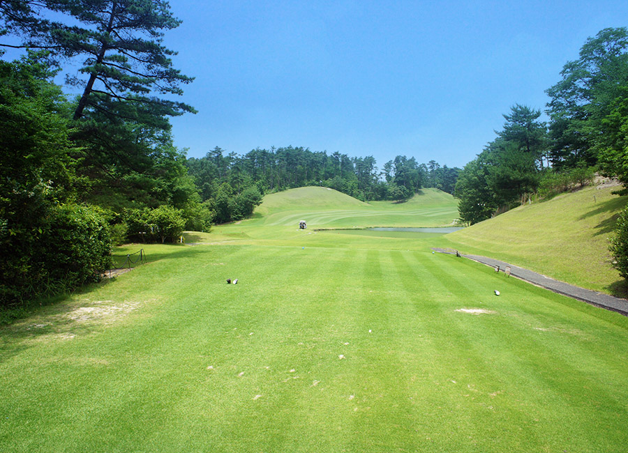 1打目は右サイドの池を避け左サイド狙い。2打目はやや打ち上げの為、距離感に注意。