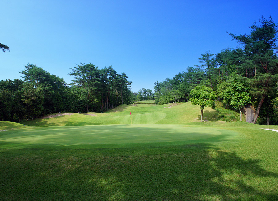 グリーン両サイドにバンカーが待ち受け、ショットの精度が問われる。グリーンは2段。