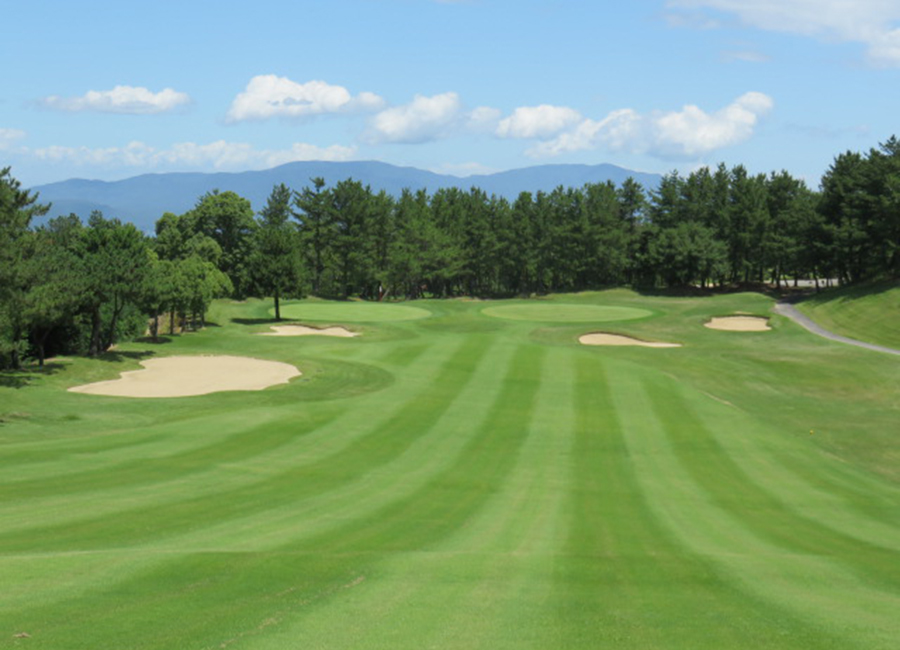 左の谷はOBの為、ティーショットはセンターより右サイド狙いがポイント。