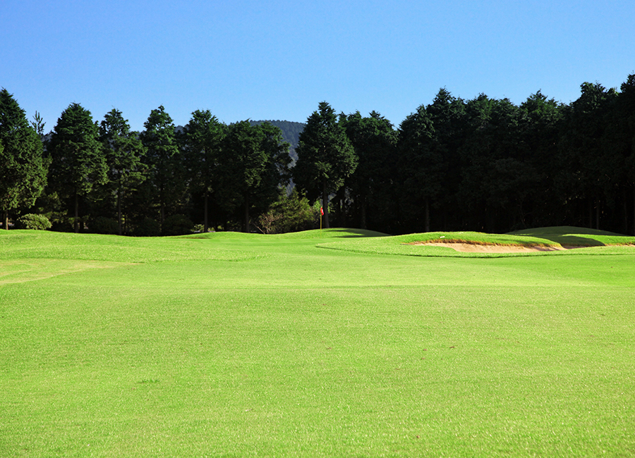 打ち下ろしのパー5。飛距離に自信がある方は2オンチャレンジしてみてはいかがでしょうか。第2打のクラブ選択がポイントです。