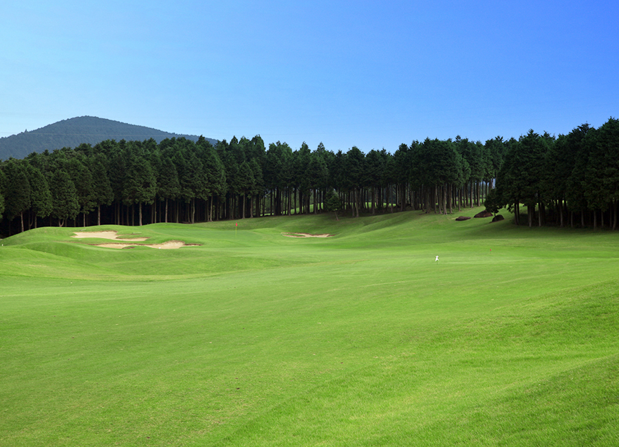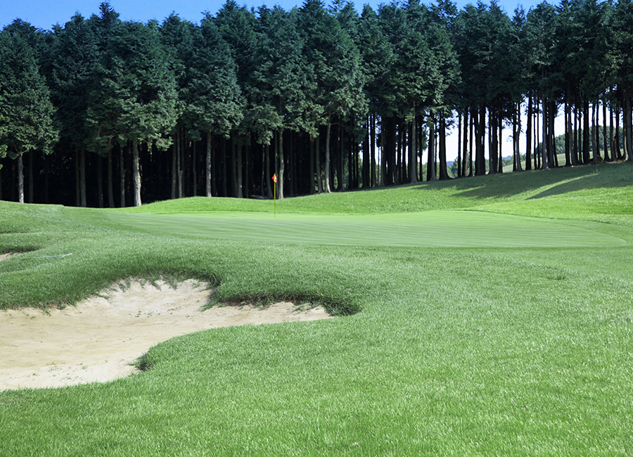 ゆるい打ち上げですが思いっきりドライバーを打てるホールです。縦長のグリーンのサイドにはバンカーがあるためショットは慎重に!