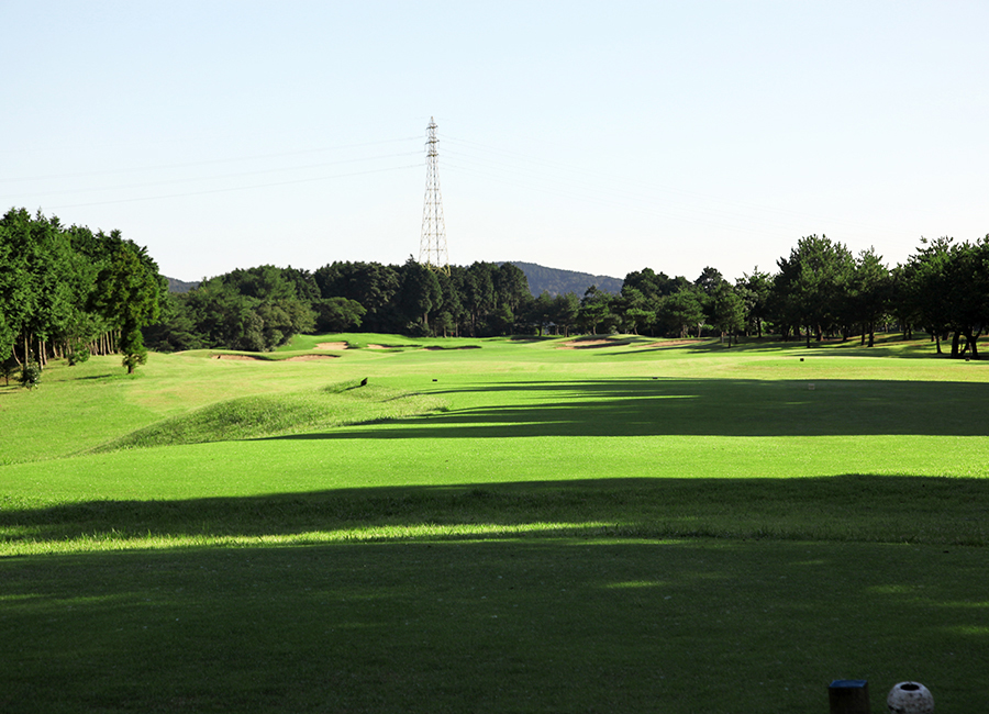 ティーに立つと右にバンカー群、左に大きなバンカーが待ち構えています。IP手前とグリーンを囲むバンカーがプレッシャーを誘います。