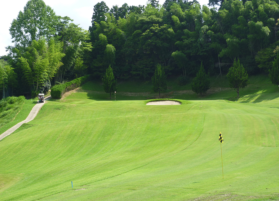 左の池はさほど気にならず、飛ばし屋なら思いっきりドライバーを振れるホール。