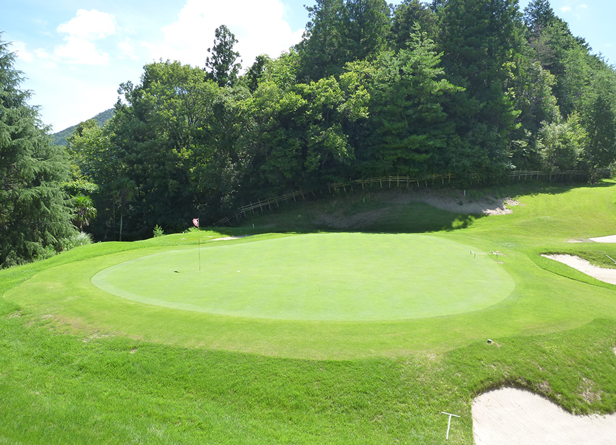 グリーン奥がすぐOBの為、短めのショットの方が安全。