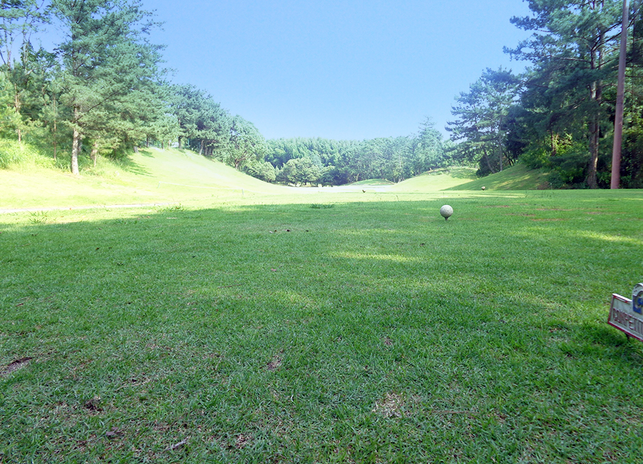 ティショットは左斜面が狙い目だがOBに注意。右に突き抜けるとワンペナ。