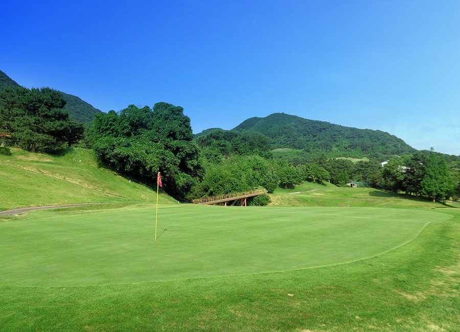 クラブ選択を慎重に。グリーンオーバーはOB。2段グリーンのアンジュレーションにも注意。