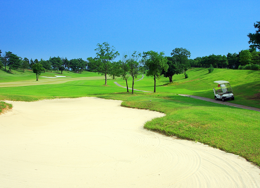 七尾湾を望みながらプレッシャー無く打てる打ち下ろしのミドルホール。