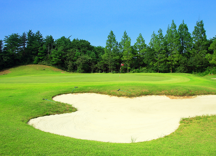 距離短かめでパーオン率の高いミドルホール。但し、2段グリーンの為、落としどころに注意。