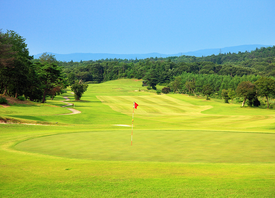 セカンドショットがやや打ち上げのミドルホール。右ガードバンカーの位置に注意。