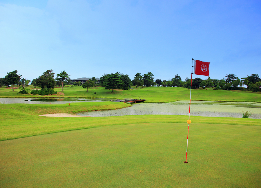 距離が短めな池超えのショートホール。風と2段グリーンの傾斜に注意。