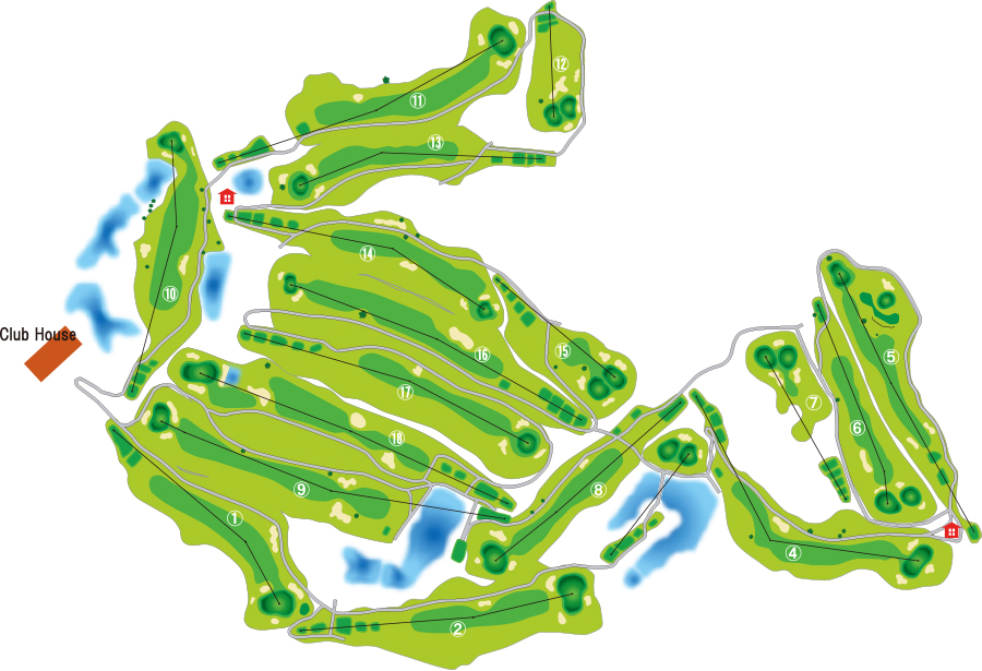 源氏コース(OUT)は変化に富んだホールが多く、平家コース(IN)は豪快なショットが随所に楽しめるチャンピオンコースです。